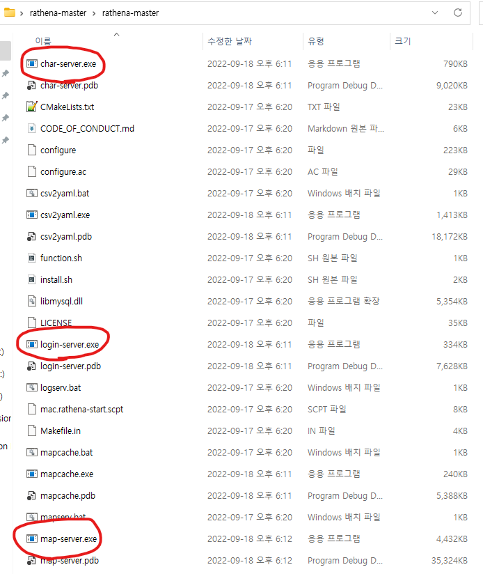 이제, rathena 가 있던 폴더를 다시 가보면,