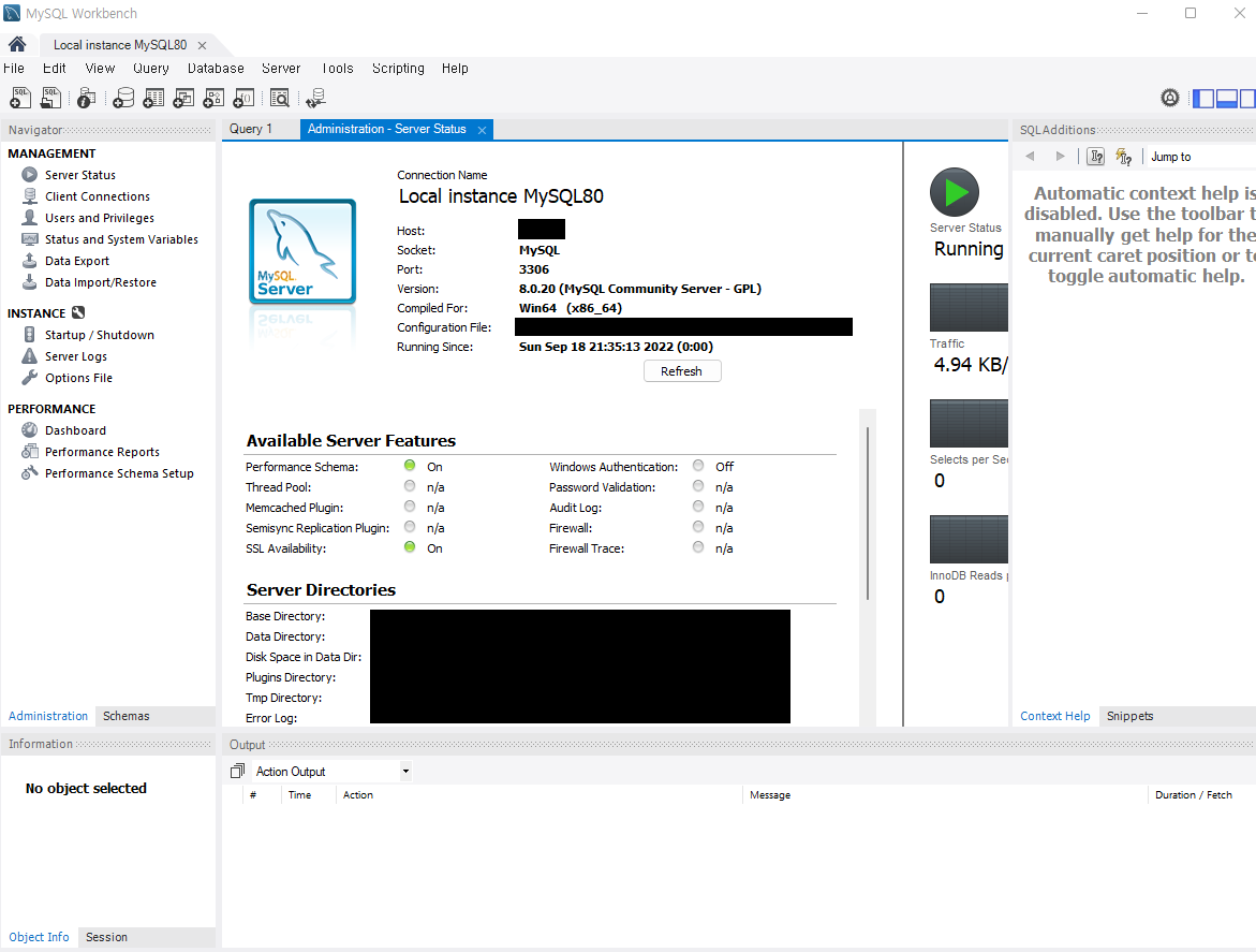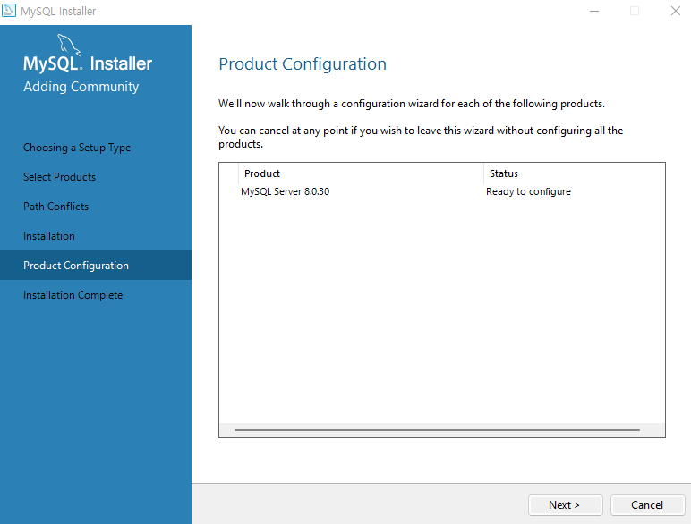 내 컴퓨터에서는, 8.0.30 버전에서 SQL 서버가 제대로 작동하지 않는