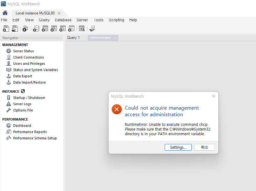 Local instance MySQL80 이라고 적혀있는 저 부분을 눌러준다.