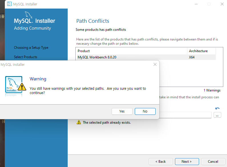 MySQL Installer 도 함께 지울꺼냐고 묻는데,