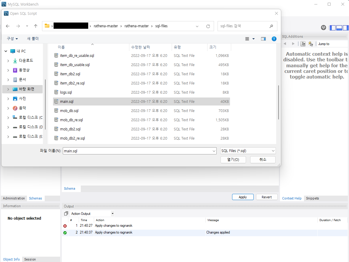 이중에서 main.sql 파일을 선택하고 열어준다.