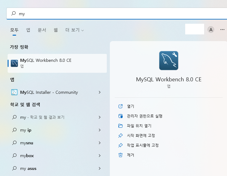 여기까지 했으면 MySQL 설정은 모두 끝난것이다.