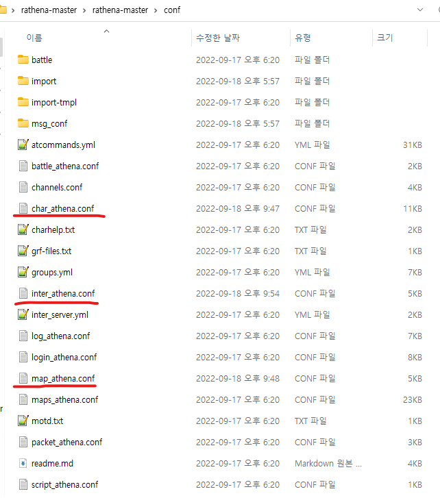 rAthena가 설치된 폴더 > conf 폴더로 들어간다.